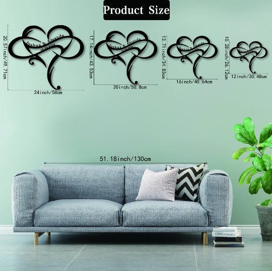 Add warmth and meaning to your home with the Personalized Eternal Love Symbol for Couples. Shaped with a timeless infinity symbol woven into a heart, this stunning metal artwork symbolizes unbreakable connection and forever love. Perfect for couples, newlyweds, or anyone cherishing lifelong bonds, this piece can be customized with names, initials, or a heartfelt message—turning it into a unique keepsake that reflects your personal love story.